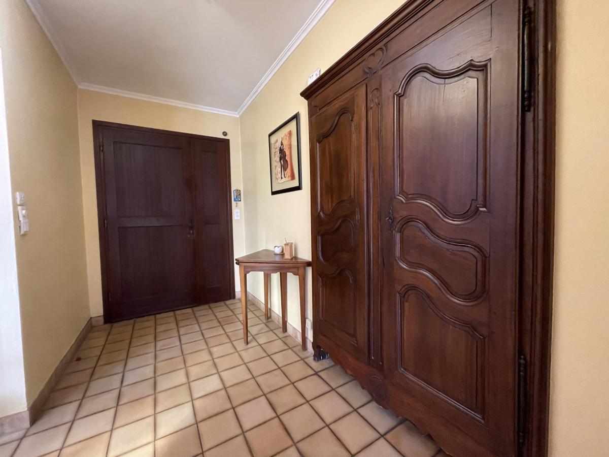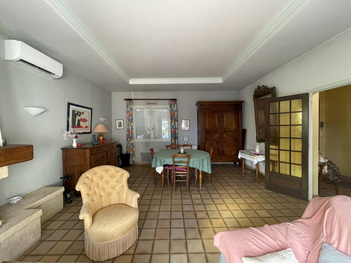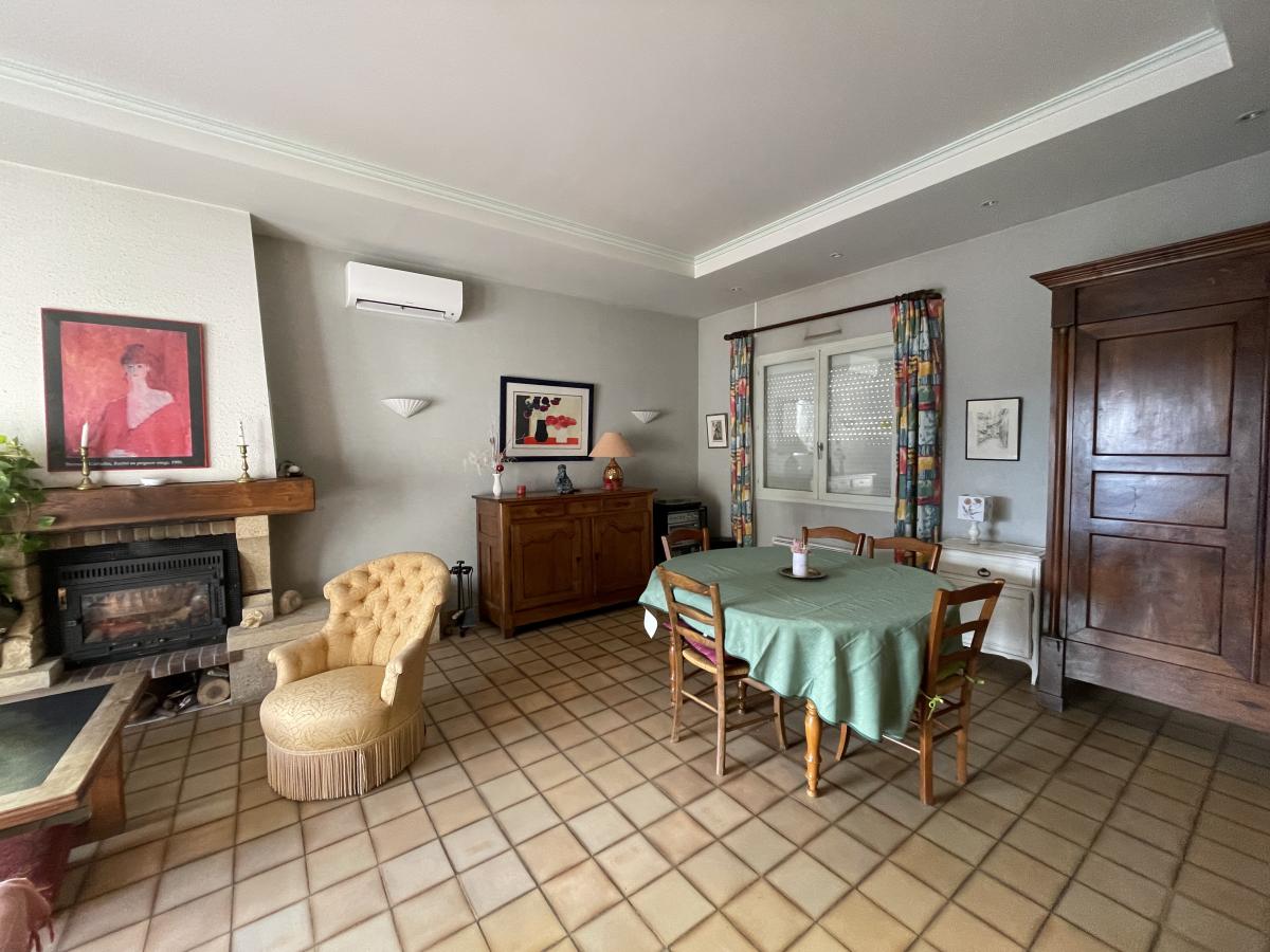 Elle comprend 7 pièces, dont 5 chambres dont 2 en rez-de-jardin, ainsi que 2 salles d'eau et 2 WC. Le séjour, d'une surface de 31 m², offre une exposition Est sud Ouest avec la vue dégagée sur le jardin et la verdure, une cuisine équipée indépendante donnant sur une belle terrasse.
