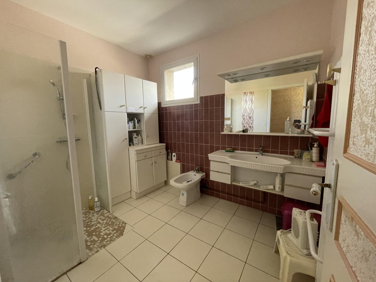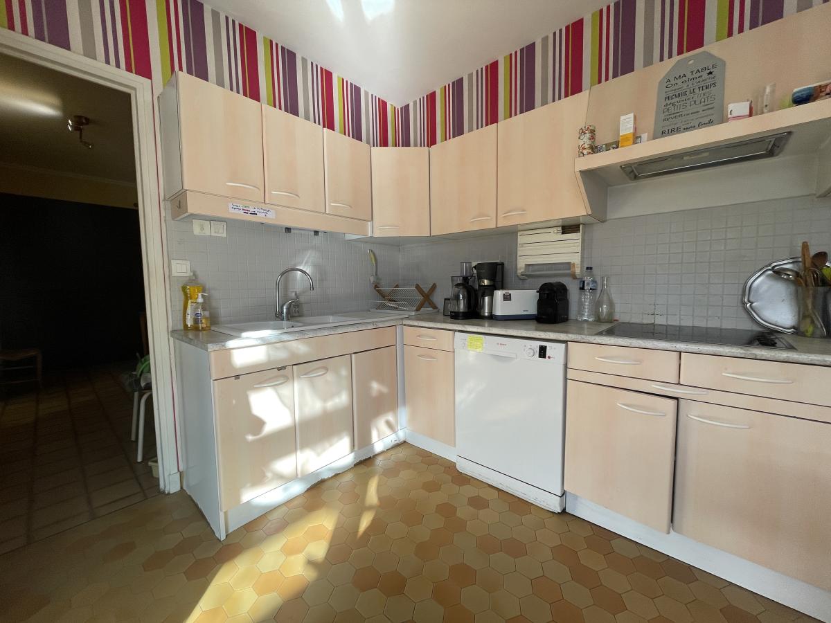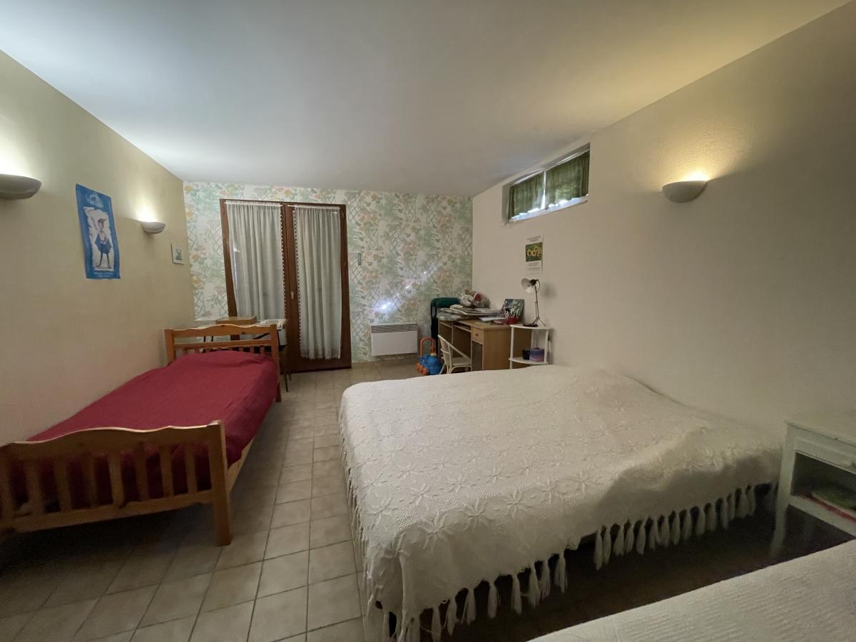 Elle comprend 7 pièces, dont 5 chambres dont 2 en rez-de-jardin, ainsi que 2 salles d'eau et 2 WC. Le séjour, d'une surface de 31 m², offre une exposition Est sud Ouest avec la vue dégagée sur le jardin et la verdure, une cuisine équipée indépendante donnant sur une belle terrasse.